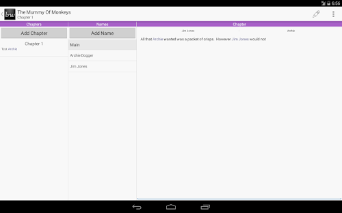 Set up names separately and link them in your the stories. This makes them easier to change later.