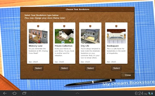 1. Build your bookstore – choose from 4 different styles and customize with 3D objects.