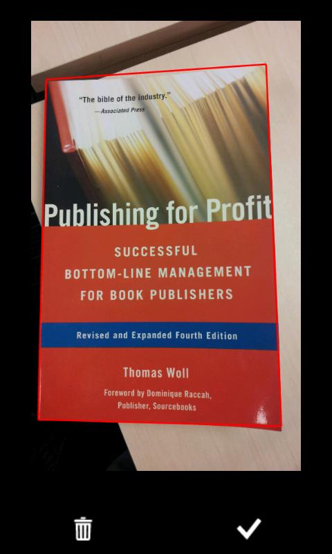 -. For the best results, take the photo in the shade (in order to avoid reflection) and fill the entire screen with book cover.