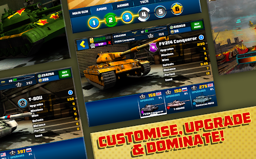 Unlock, collect and equip iconic classic and contemporary tanks including the American M1 Abrams, Russian T-80U, British Challenger and many more. Earn in-game cash for destroying high profile targets and upgrade your tanks with new armor, guns and ammunition to ensure victory on the battlefield will be yours.