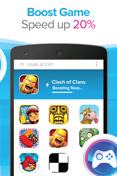 By finishing unrelated apps & processes for playing game, your phone will be optimized for your gameplay. By average we are able to boost your game by 20%!