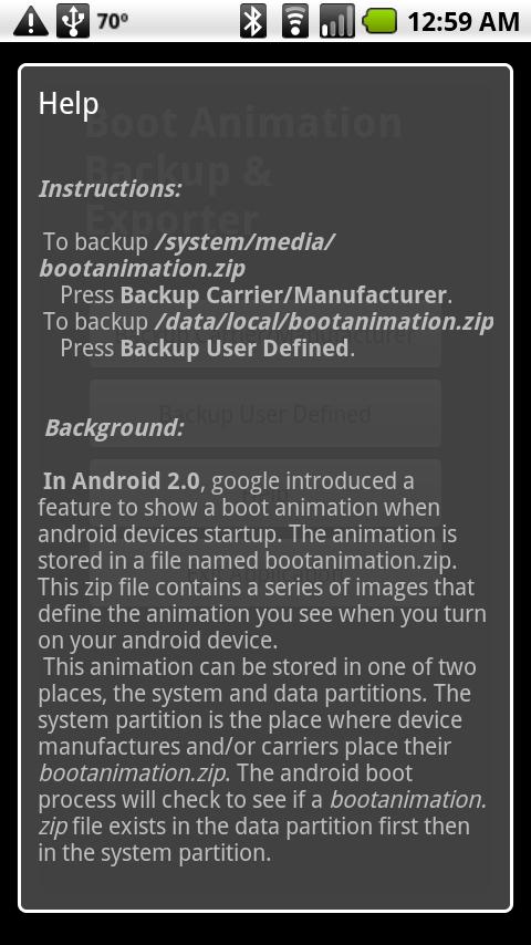 A simple program to backup the Boot Animation on your Android 2.0+ device.