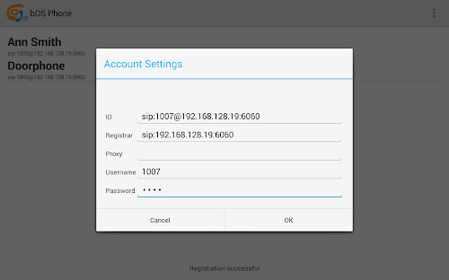 - The Registrar should be set to your registrar server (e.g. sip:myregistrar.com)