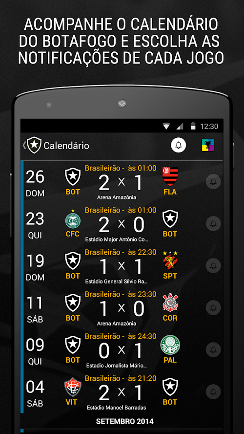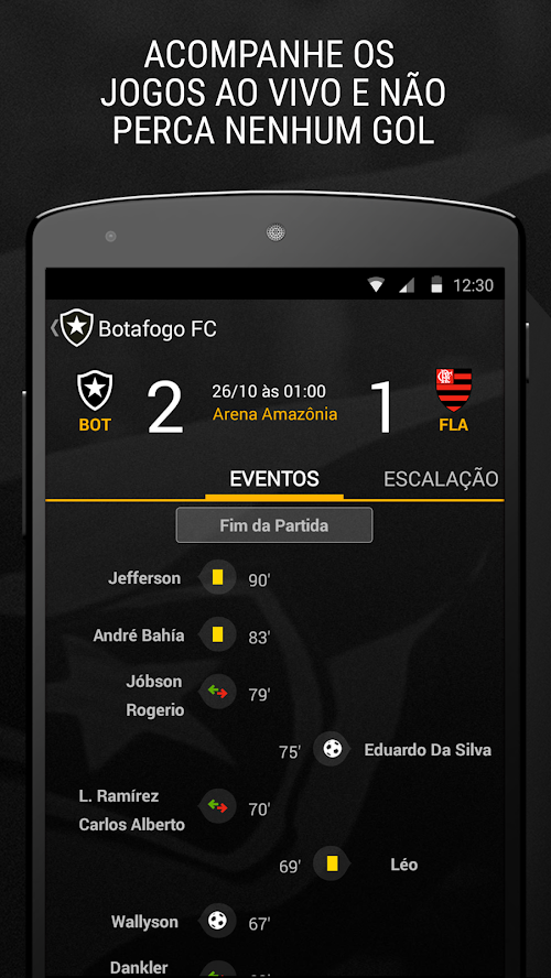 *Acompanhe de perto os eventos mais importantes dos jogos e receba alertas automáticos de gol, escalação, começo, intervalo e fim da partida