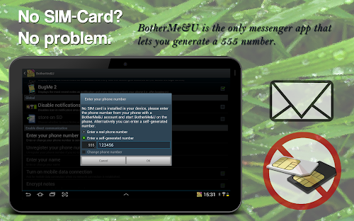 • No SIM-card necessary – generate your own 555 number to send messages from your tablet or smartphone without using your real, private number.