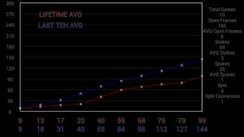 *Chart shows your trend for your last 10 games bowled compared to your average.