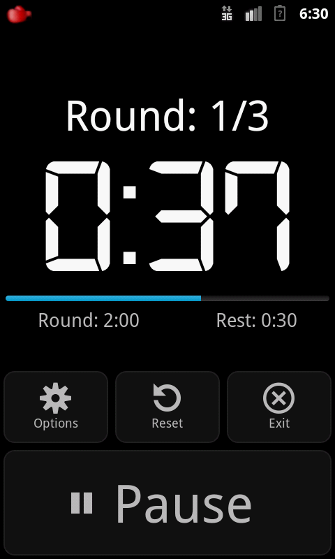 This app helps you to count your rounds and gives signal each time when you have to start or finish with an interval. Optional warm up session to get ready for the first round. Volume control through the whole application. Keep the screen on for the workout period. Start your workout with only a shake if you already have your gloves on. Choose from official round lengths. 30 seconds rest period for a Fast Paced Workout. Active workout also runs in the background, but still easily accessible from the notification bar.