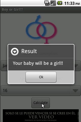 Are you pregnant? Want to know if is a boy or girl? With this gender predictor you will find your answer (this application is a mere entertainment, results should not be taken seriously).