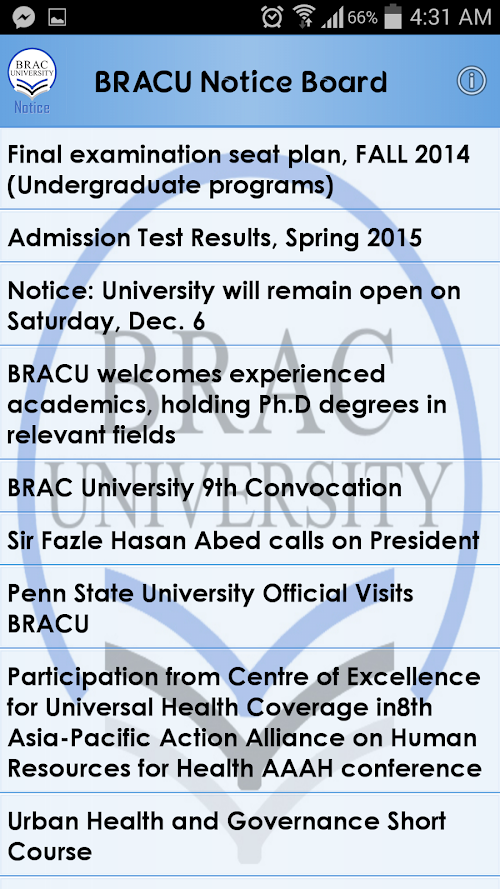 [This app does not use the database of the BRACU website. So may be there will be some missing information. We are extremely sorry for that. But the good news is you can see the headline of that missing notices in the Notice list.]