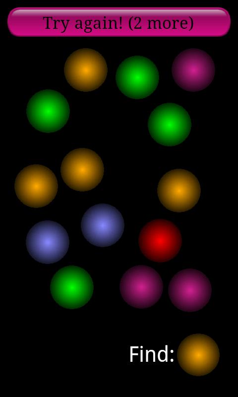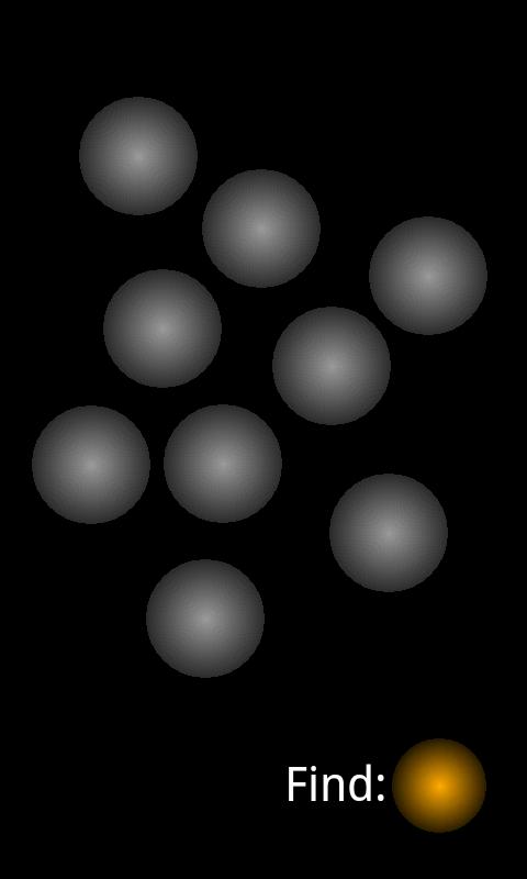 When you start a game, you will see several colored balls. Your goal will be to remember their colors. After several seconds the balls will turn grey, and one color will be selected. You will have to find balls that had selected color. If you succeed, you will go to next level, with more balls. If you make a mistake, next time the numbers of balls will be decreased by one. You will have 3 attempts. After third mistake test will finish and your brain score will be computed.