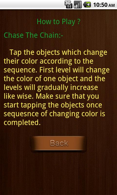 Chase the chain - Stimulates your brain and increases its grasping power. Tap on the object that change the color according to the sequence it is changed.