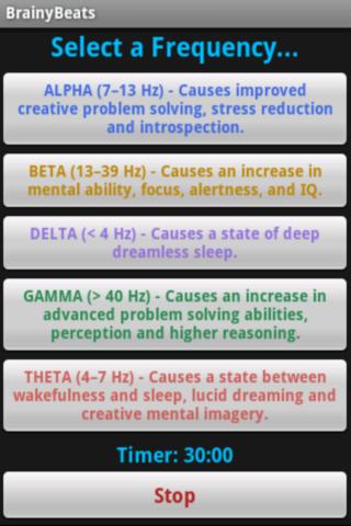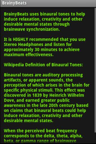 BrainyBeats uses binaural tones to help induce relaxation, creativity, focus, enhanced cognition and other desirable mental states through brainwave synchronization.