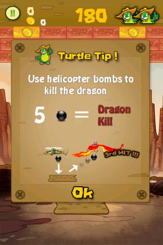Turtle is not the only thing to catch but there are also birds dropping eggs , helicopters dropping bombs and the final lap has an encounter with the dragon.