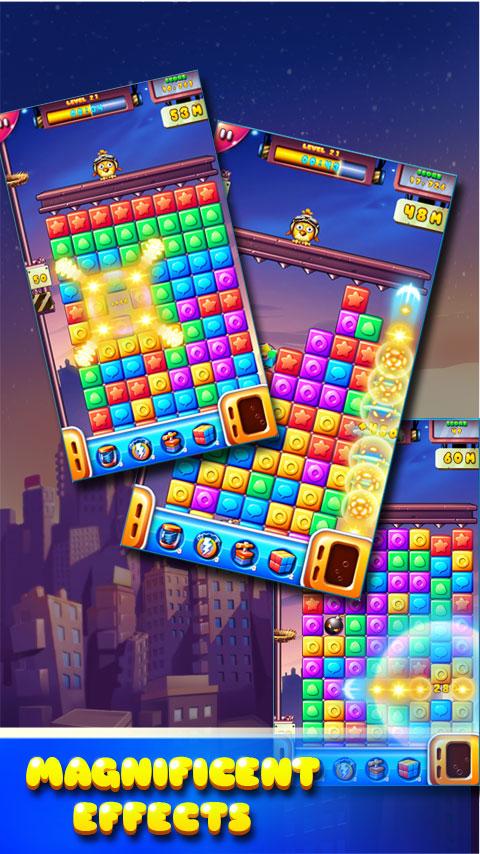 Find and click groups of two or more same blocks to make them blast and do it fast to reach the crazy mode. Use the beam to crush blocks by creating falls and collect birds to increase its hang time. You’ll be addicted to "Brick Breaker" from the first hit!