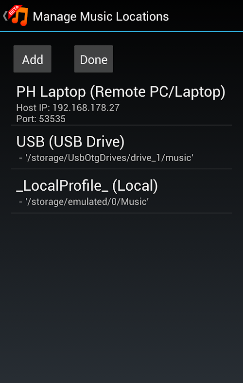 - copy the songs to a local directory or mounted USB stick (also possible with a computer on the same network!)