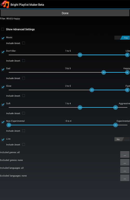 - open "Bright Playlist Maker" to create a new playlist in "Bright Sound"