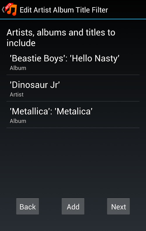 - generate by artist/album/titles: up to 3 artists/albums/titles