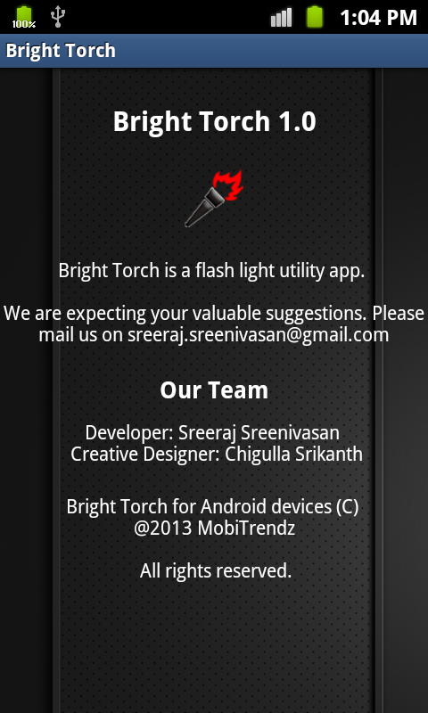If you are looking to download other versions of Bright Torch Android App, We have 1 version in our database. Please select one of them below to download.