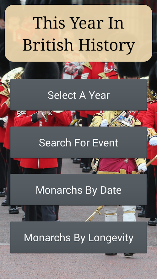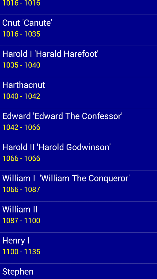 It contains a year-by-year database of significant dates in history from the Roman Conquest in AD43 to the present day. The database can be searched for a given year and the events of that year (+/- a few years) are displayed. Alternatively a word (or part word) search will display all years where that clue is found. The App also has a graphical portrait database of British Monarchs from Alfred The Great to Elizabeth II who may be browsed by date or longevity of their reign. The graphics are optimised for full-size tablets but scale equally well to smaller screens.