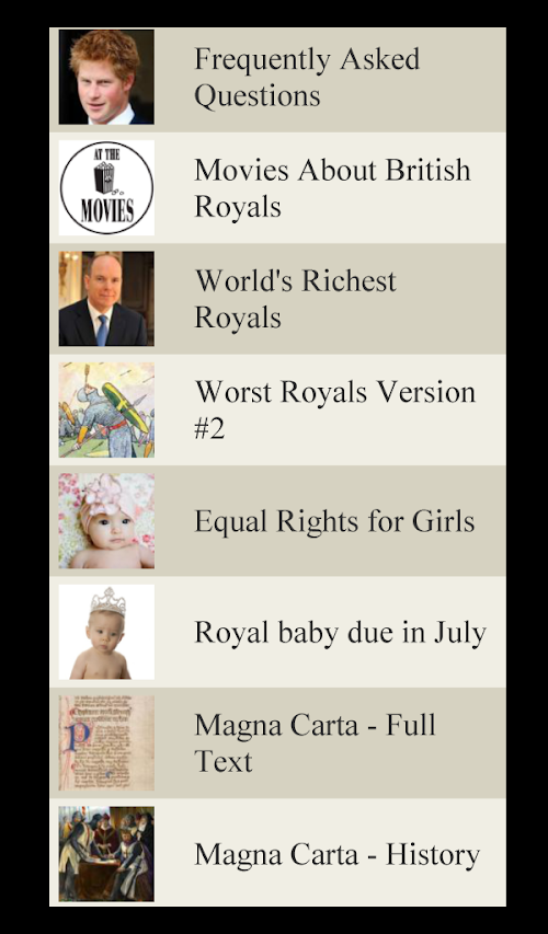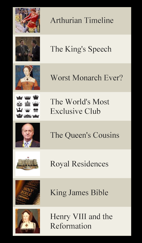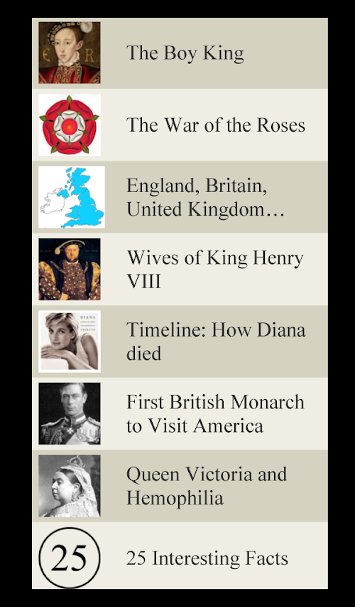 Do you love great history? Do you love facts, lists and trivia? Do you love British history? Do are you fascinated by everything Royal? If so, you'll love this App. It is simply a collection of great lists, stories, articles and facts about the British Royal Family. There is tons of information to read and enjoy!