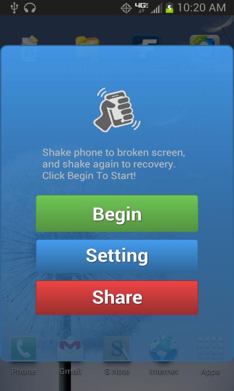 Start the application, hand the phone to your friends, oops, the phone screen is now broken when they shake the phone.