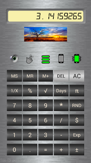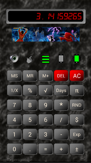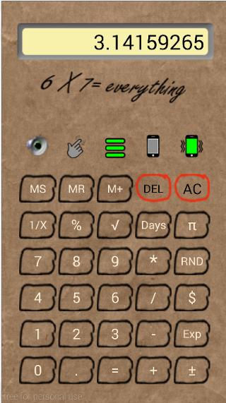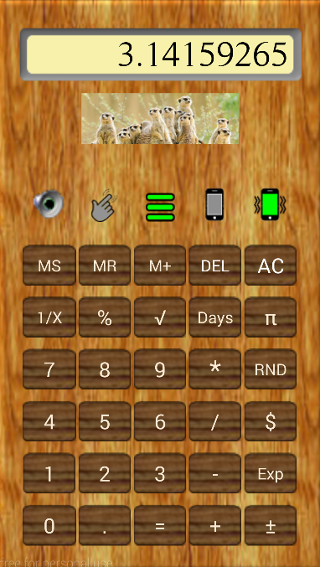 This simple calculator comes in a brown paper wrapper but can be dressed up to personalize its appearance to the user’s own style. Users can create their own versions of buttons, banners and save these to the "Download" folder to customize the appearance.