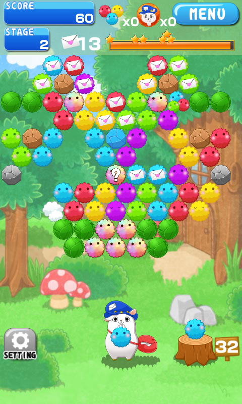 How far can you proceed from your latest cleared stage of stage mode? Increase your score by bursting more and more bubbles.