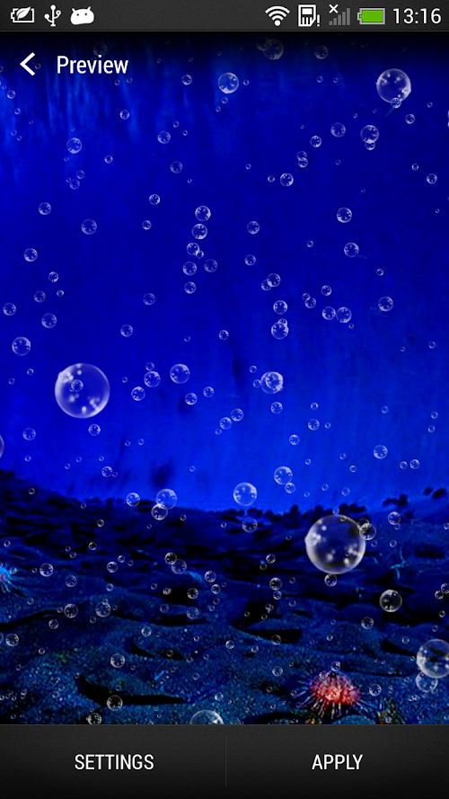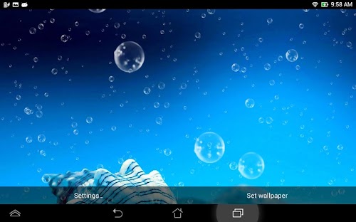 Bubble Live Wallpaper can take you to the exciting underwater journey into a new water world right now! Discover a gorgeous bubble town, or enjoy exploring the stunning sea life - it is up to you!Give your phone or tablet a bubble bath – you get to choose the speed and number of the little balloons floating around the lovely sea shells on the bottom of the ocean. Immerse yourself into the crystal clear sea water and check out the cool parallax effect of this amazing “live wallpaper”. “Bubble Wallpaper” is the cutest bubble gun you will find on the market that can make your phone look like a submarine whenever you glance at it. Your new adventure “under the sea” starts with this app! Enjoy!