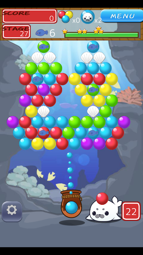 Every stage has fixed number of "Fish" bubbles placed. You need to drop down all the fish bubbles to clear the stage!