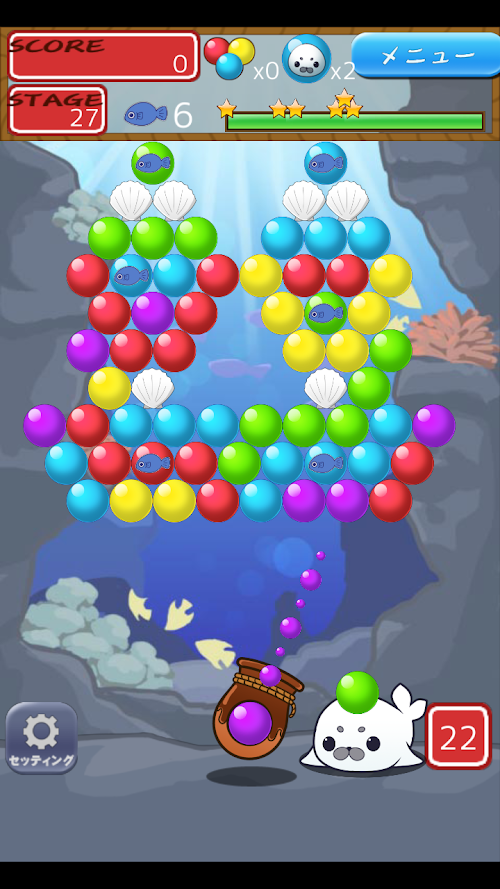 How far can you proceed from your latest cleared stage of stage mode? Increase your score by bursting more and more bubbles.
