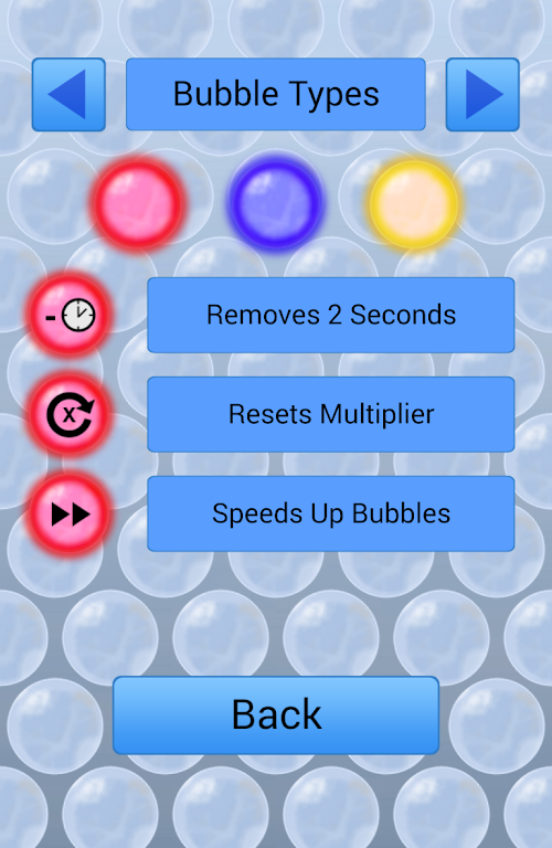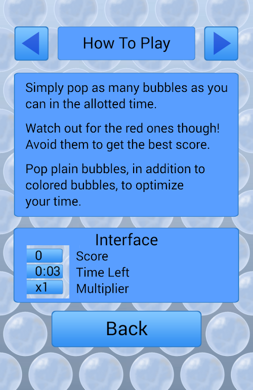 Bubble Pop, the fun and exciting game where you aim to pop as many bubbles as you can in the allotted time. Blue bubbles give you bonuses to help you get the highest score but don't forget you must watch out for the red ones though! Hit one and it will make increasing your score more challenging.