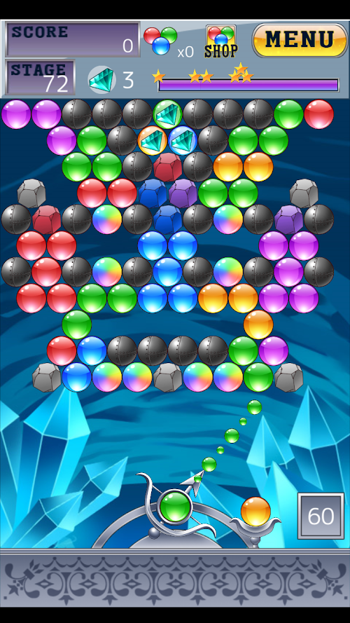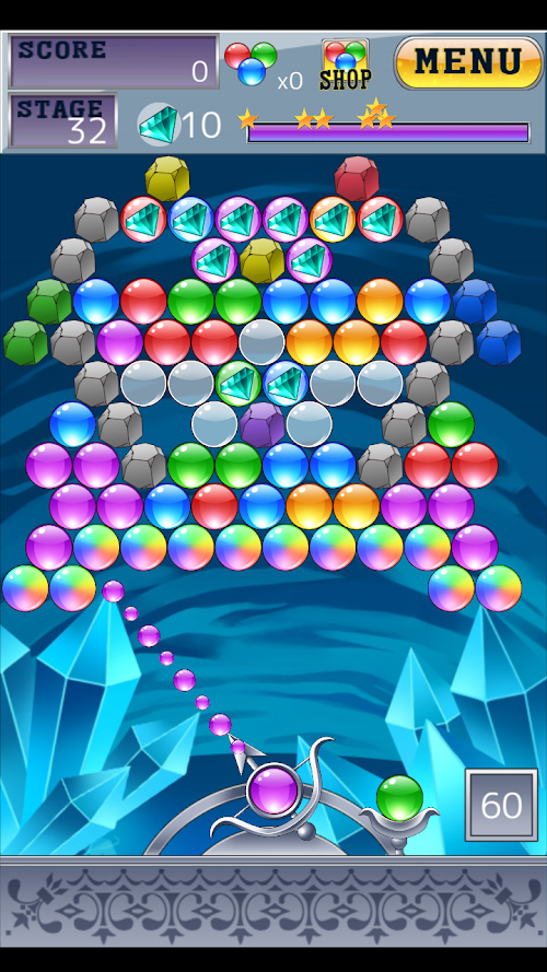 Very interesting and addictive shooting puzzle game. Aim and shoot the same color crystal bubbles! Block of 2 or more same color bubbles will burst!