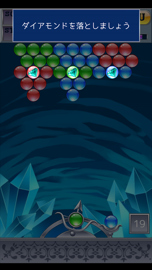 Every stage has fixed number of "Diamond" bubbles placed. You need to drop down all the diamond bubbles to clear the stage!