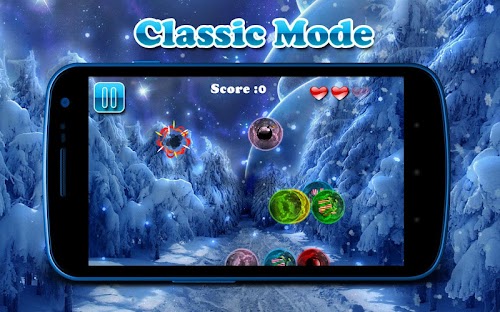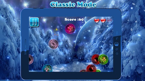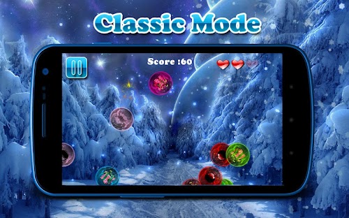 In Classic Mode, simply pop the colorful bubbles and gift bubbles.Don't pop the bomb bubbles,it takes one life.