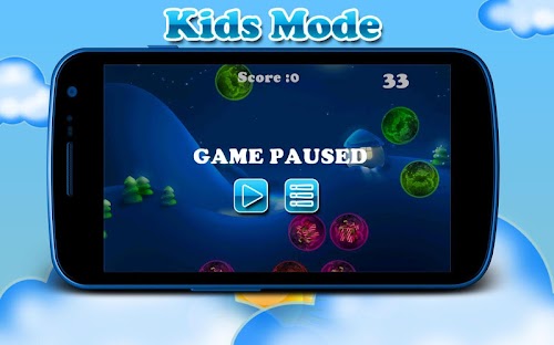In Kids Mode ,simply pop the colorful bubbles.Don't miss the gift bubbles, it gives 50 points.
