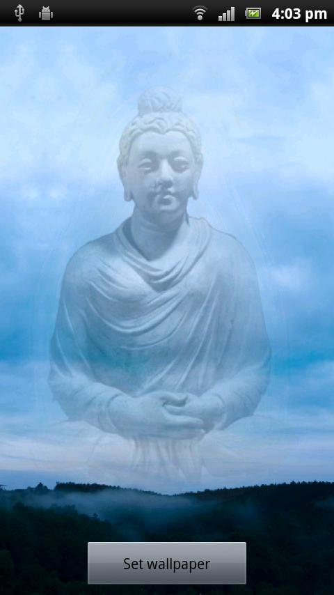 Download Buddha Live Wallpaper app and get a wonderful image of Buddha that appears and disappears in the background of a blue sky with clouds. This Buddha live wallpaper app is FREE and it will beautify your android phone and make it unique.