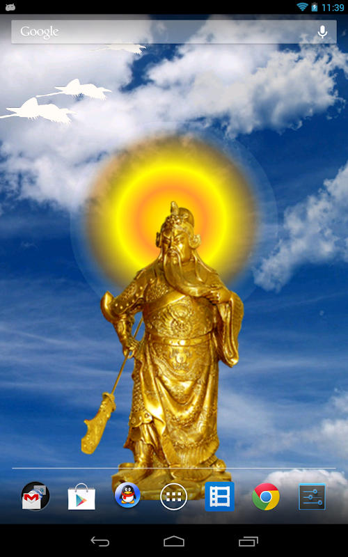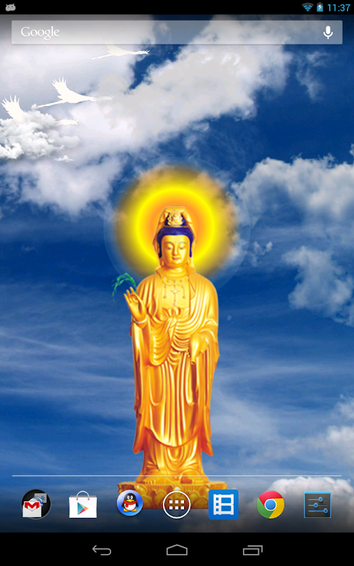 Buddha's wisdom and illuminating and shelter of all living things. 7 Live Wallpaper Buddha (Buddha, Guanyin Bodhisattva Jizo Buddha ancestors, Matsu, Guan Gong, joking), 3 sets of blue sky background for the user to choose, the user can prefer to set the Buddha's Light shine, floating clouds, birds grazing across the sky animation, welcome to download.