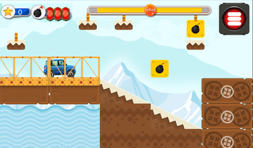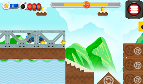 Game for children "Build a road car" is an action and puzzle. You will travel by car twelve namely four wheel jeep. But there is one problem, the builder forgot to lay down the road on which you need to pass it to build the bridge, remove the pits and obstacles that hinder drive your car, all you need to fix, and try to get more stars and avoid the dangerous mines that can hinder you . Also, not all just on the road there are traps and tricky puzzles that you can decide what to get to the finish.