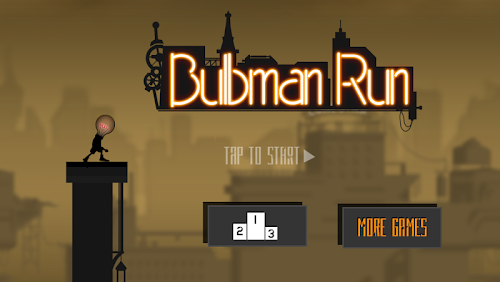 Bulbman Run is the latest fast-paced platform thriller featuring a lonely Bulbman dashing and jumping in the rooftops in a lost city. Your goal is to guide the Bulbman to run the farthest he can and escape from the lethargic world.