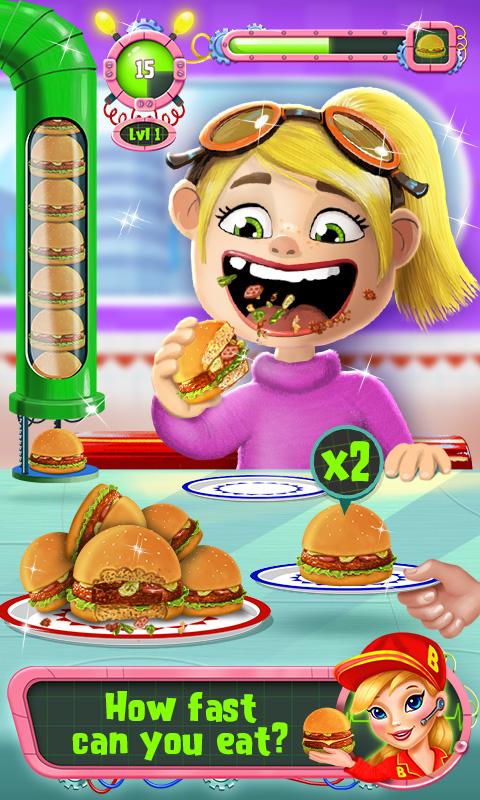 Play super awesome games like burger eating contests and tomato catching games! Wrap and toss burgers to feed hungry customers! Challenge customers to see who can eat the most burgers! You can even take on expert Burger Star levels for hours of extra fun!