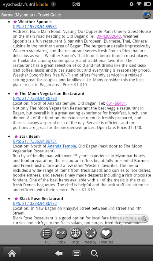 ✔ The top restaurants have been individually selected by MobileReference editors. These restaurants are marked by a star in the EAT chapter and are plotted on the GPS map.