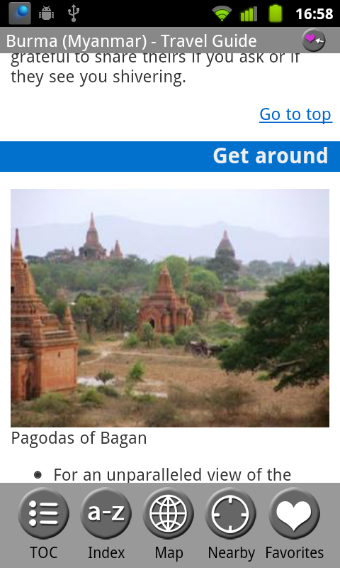 This fully-functional guide is absolutely free. The full version (only $4.99) adds Text-To-Speech and expands articles with more information about attractions, history, culture, itineraries, phrasebooks and more. Listen to complete articles on the go with Text-To-Speech: double-tap on a word to start Text-To-Speech from the selected word or select Menu > Start Text-To-Speech.