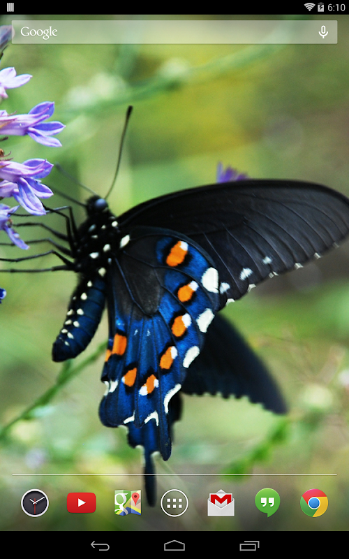 Select text from Wikipedia, which does not endorse this product. No butterflies were harmed in the making of this app. Licensed under the creative commons creativecommons.org/licenses/by/3.0/. Text at wikipedia.org/wiki/Live_Wallpaper and wikipedia.org/wiki/Butterflies.