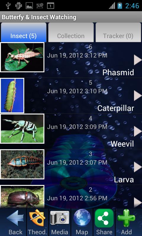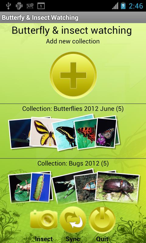 Insects such as some butterfly species, may be endangered and therefore collection is prohibited. We have written this application for users to primarily collect photographs and document characteristics of the insects rather than destroy them for obvious environmental reasons. Please be aware of local and federal laws that may prohibit collecting specimens. The Butterfly & Insect Collector application allows you to collect, track and document your bug watching incorporating images, video, audio recordings, and/or text. It also allows you to track (with GPS) your path and enables the data gathering about arthropods to be synchronized to our website, edit, and/or share your work with others. You can also allow friends to view your work during or after your insect collection by sharing it through your website, social networks, e-mail, etc. Once the media about the bug, moth, or butterfly collection is uploaded to your website, you can edit the data, create reports and/or maps, and download the data or reports to spreadsheets or other documents. (You do not need to have access to the internet to run the application). Once your gathering is completed, you can automatically create a powerpoint or video.