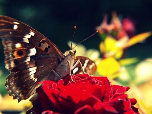 Butterflies are part of the class of Insects in the order Lepidoptera. Adult butterflies have large, often brightly coloured wings, and conspicuous, fluttering flight. The group comprises the true butterflies, the skippers and the moth-butterflies. Butterfly fossils date to the mid Eocene epoch, 40–50 million years ago.