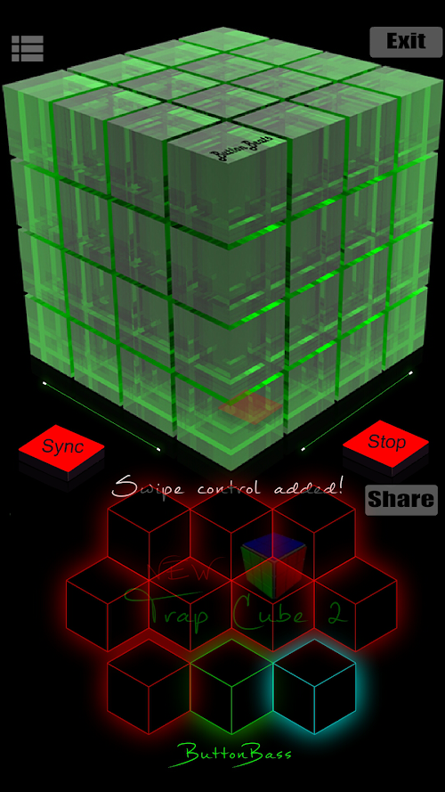 This is the ButtonBass Dubstep Cube. Tap multiple cubes on beat or use the sync button to make them synchronize. I recently added the option to swipe multiple cubes to start beats. You should be able to start beats by just tapping the cube without the need to swipe. Please email me if the app is not working as you expect and I will see what I can do to fix this. [email protected] This cube has some of the most pumping dubstep beats. ButtonBass.com was launched in august of 2007 by me, Jason. I had a set of music samples I wanted to mix up and I didn't have any software available so I made a program to mix them up. My friend came over and was playing the program for over an hour. So I thought It would be cool to upload it to the internet. So I bought the ButtonBeats.com domain name and uploaded a few different programs I made. A short time later I made the piano. I put the song Jingle Bells up to play on the piano. Then people began to submit many songs for the piano. After about a year I got my friend Everett involved in producing the site and getting the name out there. From there we had a friend Ariel that made music. Ariel, Everett and I spent many afternoons recording sound samples,editing the samples, designing ui, making beats, ordering beats, designing t shirts, stickers, programming and barbecuing. Within the last year we brought Stephan on board. He has skinned the whole site with a new look this summer and has other good ideas in the works right now. Between the four of us, we have the website generating over two million views a month. The site is popular all over the world and continues to grow. Thanks for being part of ButtonBeats.