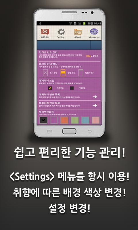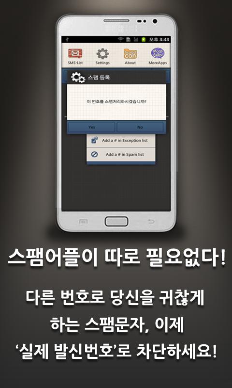 - Filter SMS Spam by its real numbers! After registering a number as Spam, blocks your device’ SMS inbox from Spam messages. In [Settings >> Managing Spam SMS], you may check the Spam SMS and delete it if you want to.