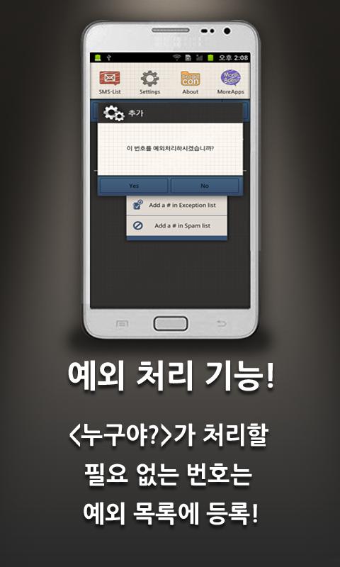 - Register the numbers that does not need filtration of and control the pop-up screen.