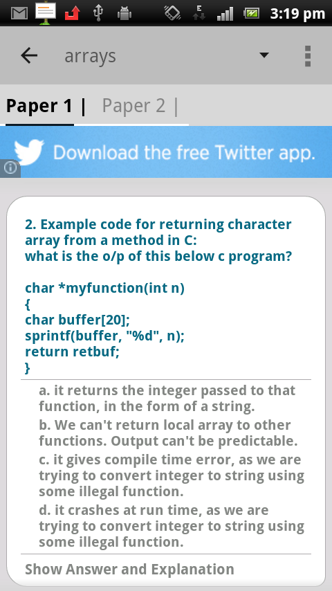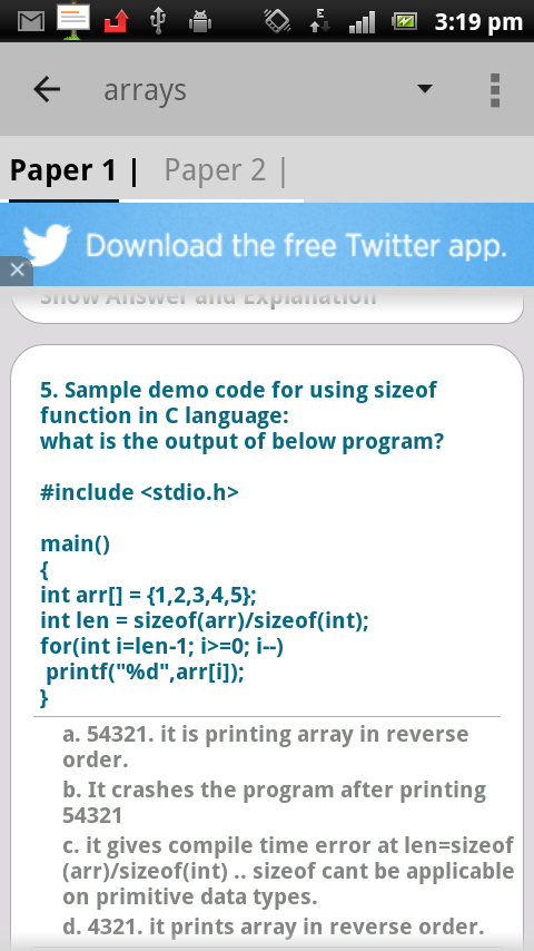 About C Interview questions Android App