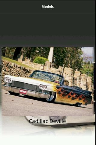 This app includes all models made by Cadillac throughout the years from the Allante to the XLR. Each model has its own photo and video gallery.
